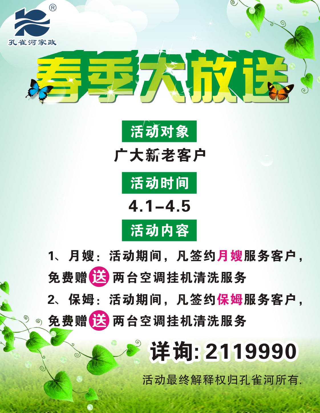 孔雀河家政盛典,瘋狂優(yōu)惠,只為感